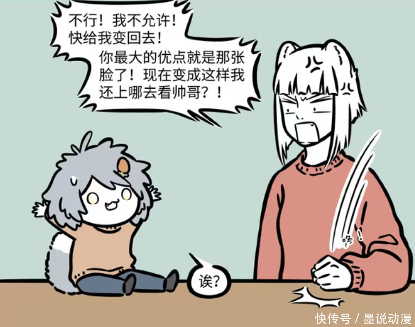 哮天随后造成东说念主形,神志跟以前完全不同,看起来就像是异宇宙的小孩,虽说也可人,但跟《非东说念主哉》的宇宙似乎不是一个频说念。哮天皆合计我方的东说念主形有点没办法见东说念主,九月也被目下的神志所吓到。
