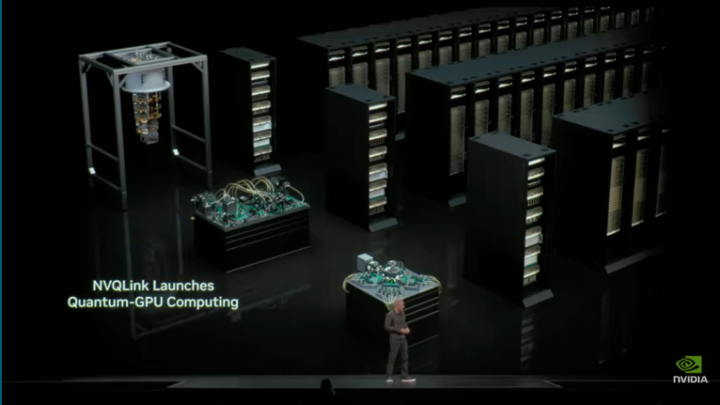 在此庞大计所有这个词谋下,英伟达同期公布了两项分量级息争。开首是推出了 NVQ Link 互联架构,专为量子处理器(QPU)与英伟达 GPU 超等操办机之间的高速搀杂模拟而瞎想,竣事了微秒级的操办蔓延。