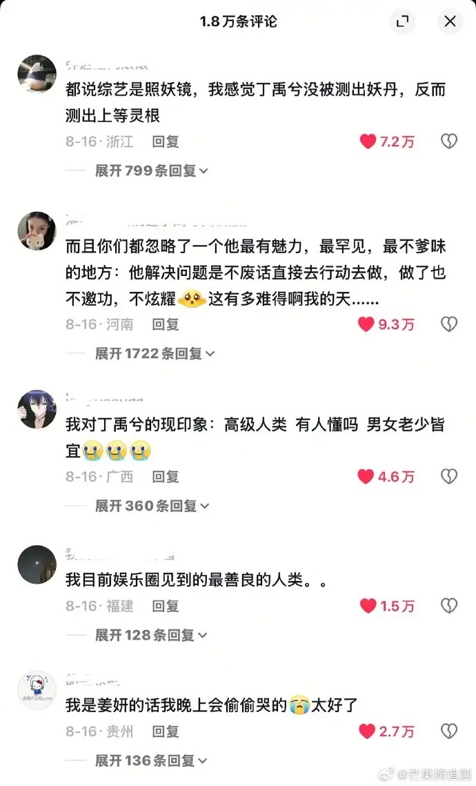 此外,丁禹兮极强的团队包摄感也令东谈主动容——因共事离开屡次落泪,坦言“不思学会濒临区分”;肃静帮姜妍倾销凉皮却未示知对方,被赞“对你好不求答复”。